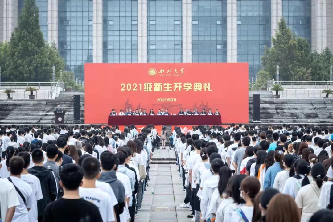 9月3日上午,西北大学2021级新生开学典礼在长安校区中心广场举行。西北大学全体在校校领导,国家级教学名师耿国华,全国优秀教师李浩,杰出校友代表、汉景帝阳陵博物院院长李举纲等出席开学典礼。7900余名本科、研究生、留学生新生和学生家长代表参加典礼。开学典礼由校党委副书记吕建荣主持。