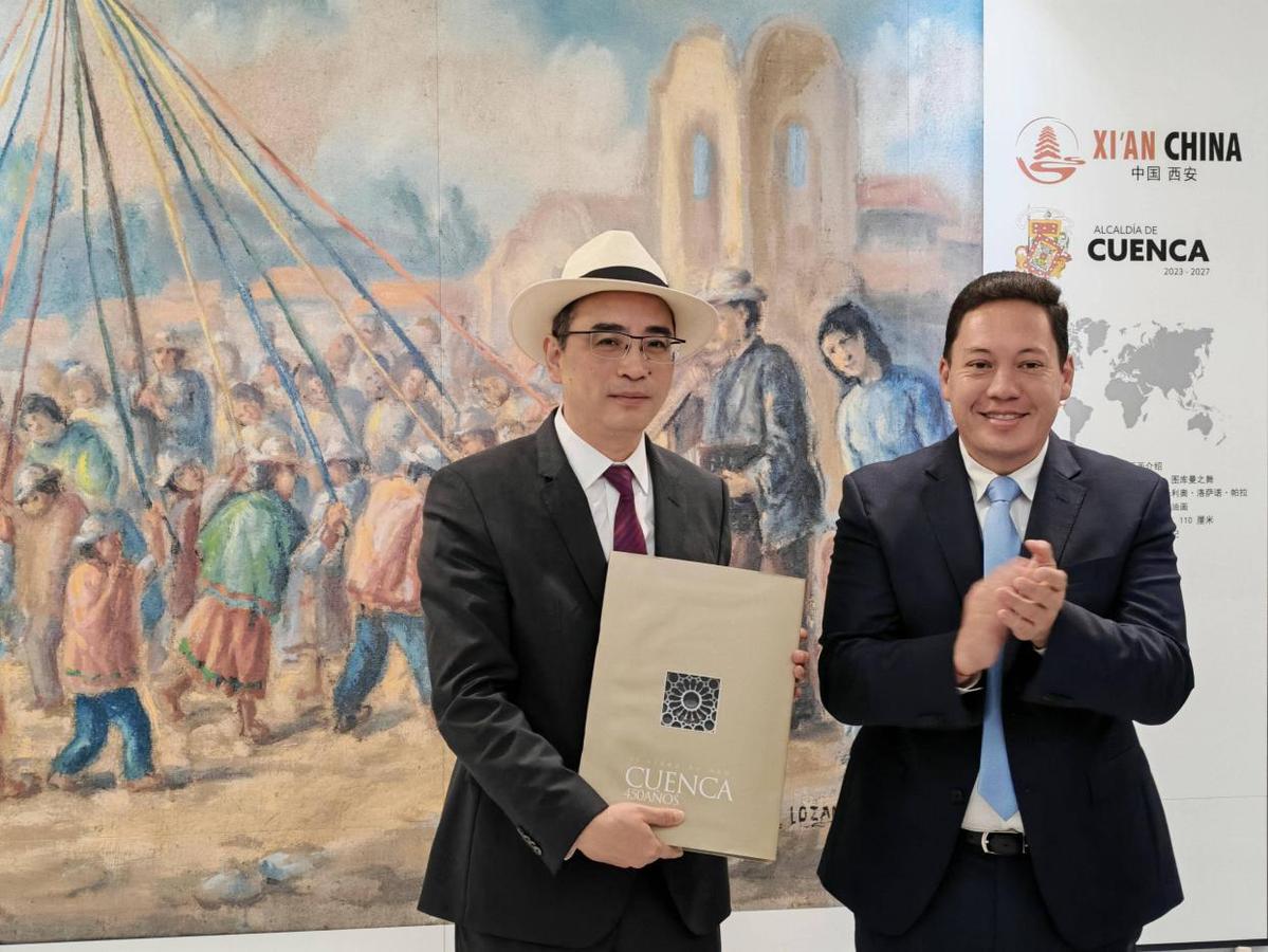 10月17日,西安市青少年活动中心举行了一场跨越山海的文化盛事——西安市友好城市昆卡市赠送壁画揭幕仪式在此举行。西安市副市长许克涛、昆卡市市长克里斯蒂安·萨莫拉共同为壁画揭幕。