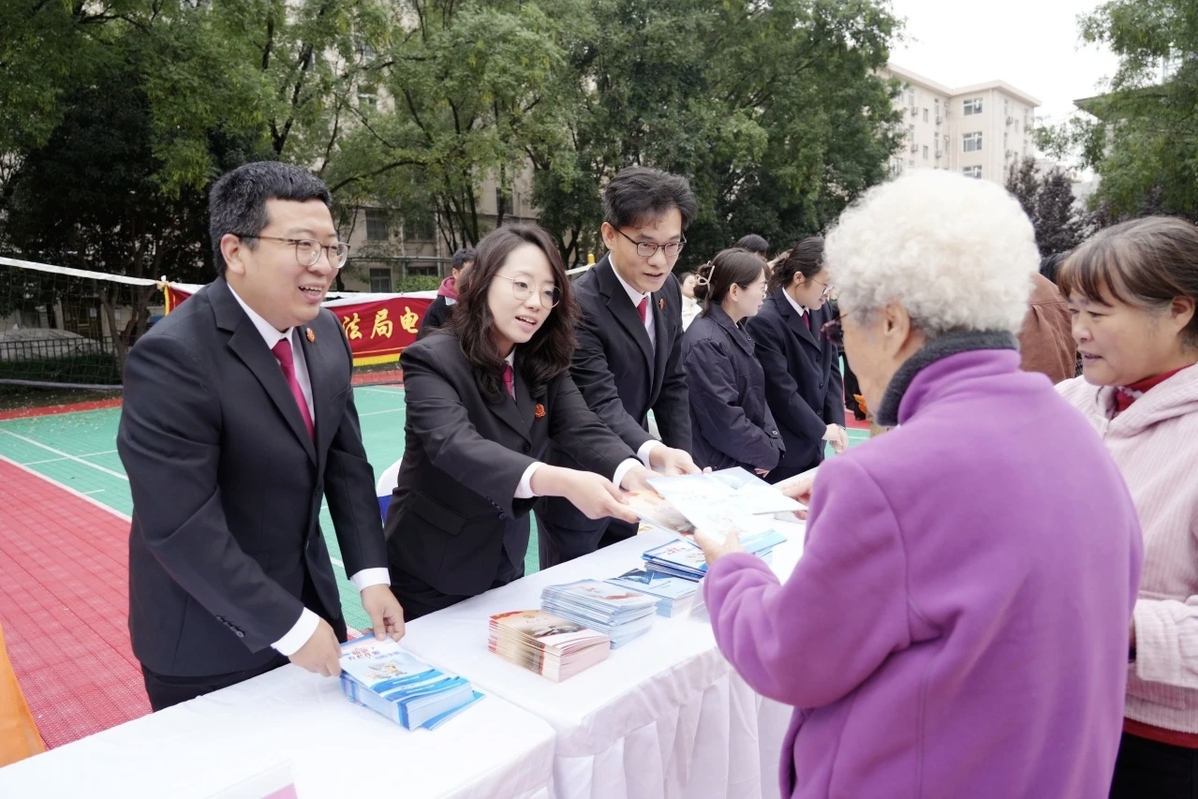 10月21日,雁塔法院综合办公室及刑庭干警走进电子城街道二〇五所社区,参与“弘扬孝亲敬老美德 共建老年友好社会”“敬老月”普法宣传活动,为社区老人精心打造“法治暖心套餐”。