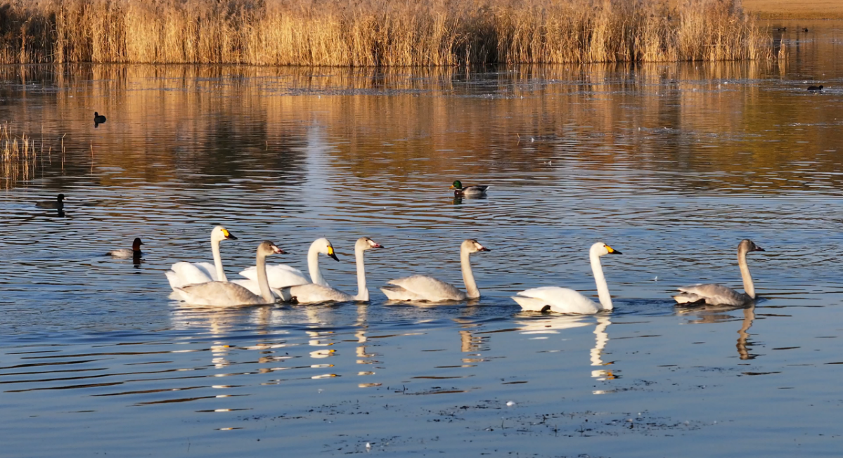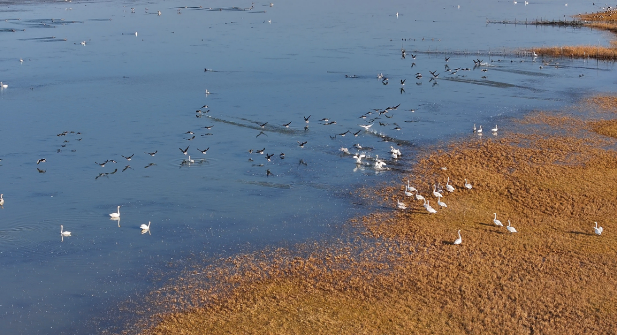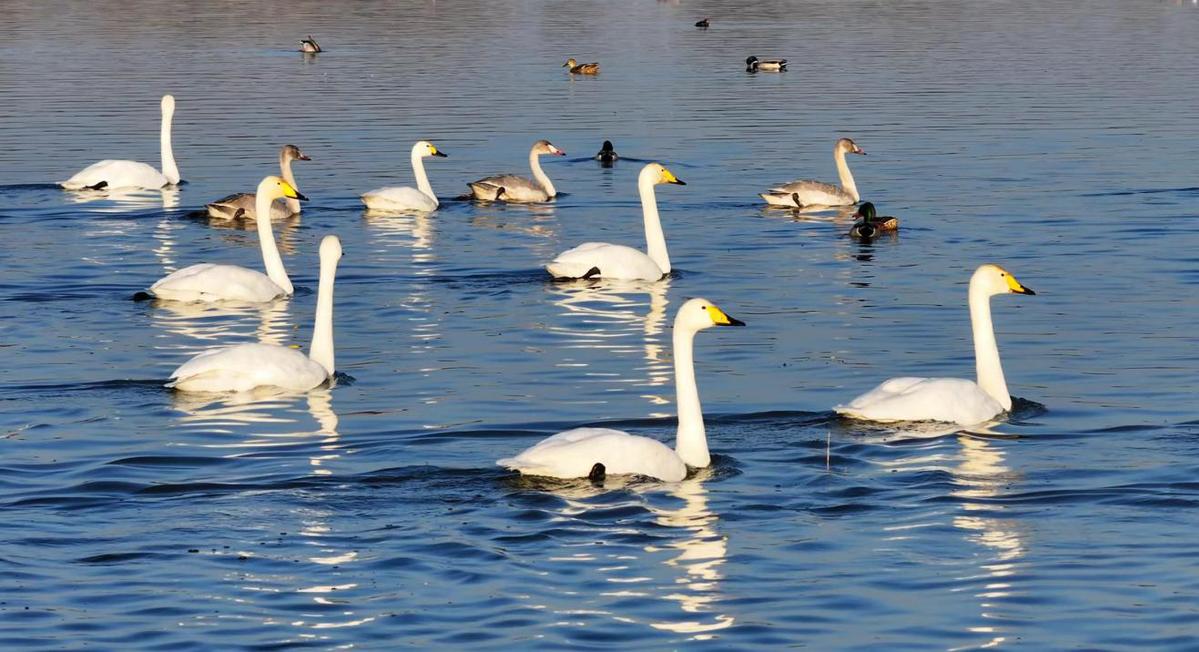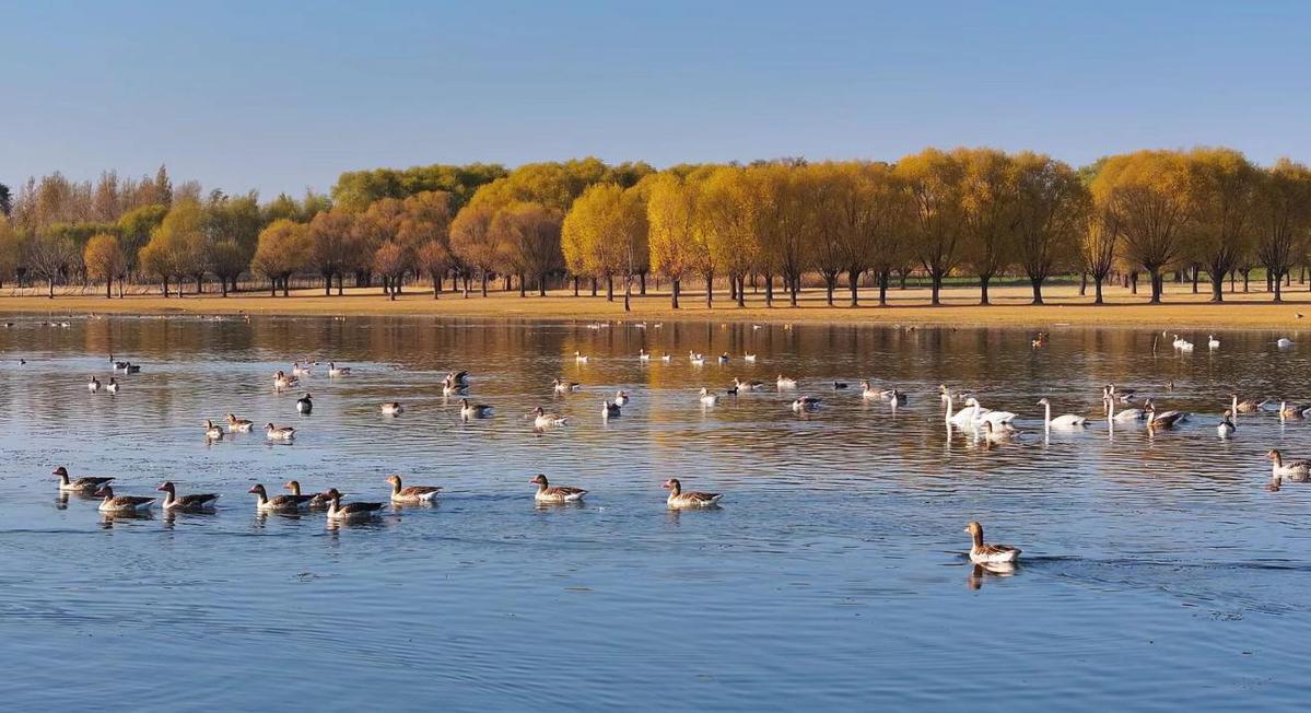 榆林是中国候鸟迁徙通道的重要中转站。地处榆林北部的河口湿地,凭借平缓的地势、宽广的水域与丰富的食物资源,每年都会吸引大量候鸟在此停歇、补充能量。据当地鸟类保护协会工作人员介绍,目前飞抵此处的候鸟有大天鹅、绿头鸭、赤麻鸭、白鹭、白骨顶等多个种类,总数约7000只,较去年同期有所增长。未来一个月,随着气温持续下降,还将有更多候鸟陆续抵达这片湿地。