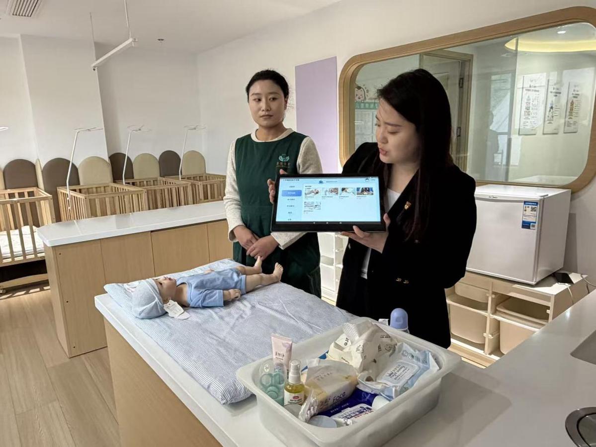 中心也是托育从业者的“练兵场”。培训教室里,学员围着智能AI婴儿教具考核:教具模拟不同哭声对应饥饿、尿不湿等需求,学员练习拍嗝、换尿布时,动作不规范系统就亮红灯扣分。模拟训练比理论课实用,面对孩子更有底气,遇到突发情况也知道怎么应对。最让家长安心的是背后的“智慧大脑”——西安市智慧托育信息化平台。打开手机 APP,孩子午睡是否蒙头、饮食量、体重变化、活动轨迹都能实时查看。