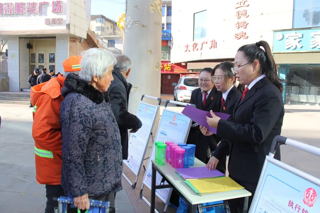 活动坚持内外联动、上下协同,在法院诉讼服务中心通过摆放专题展板、循环播放普法宣传片、发放宣传彩页等形式,向来访群众进行直观生动的法治宣传。同时,法院干警深入关庄镇大张村、延水关镇马家河村、南关社区及文化广场等多个基层地点,通过召开座谈会、播放宣传片、摆放展板、发放定制宣传彩页等方式,与群众面对面交流互动。
