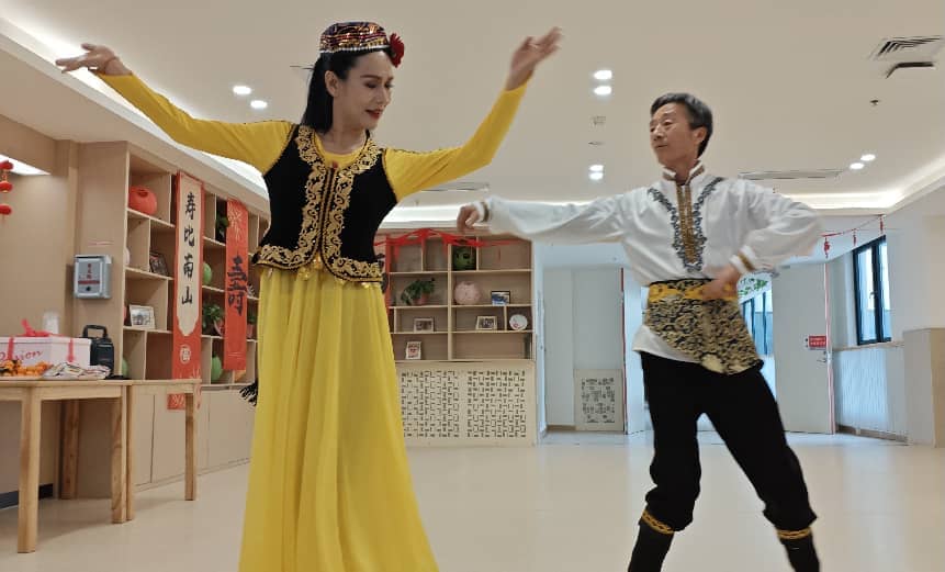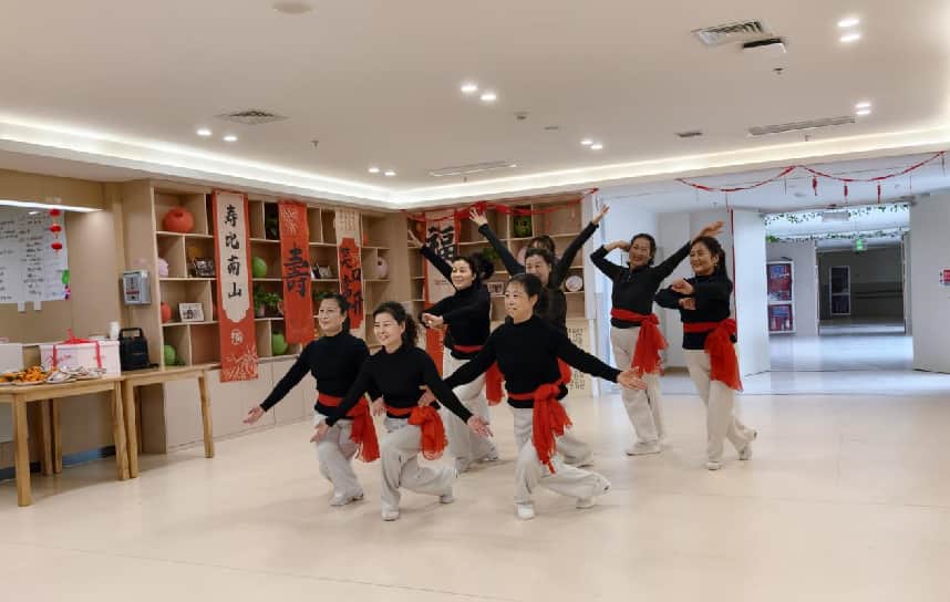 与此同时,活动大厅内的文艺演出也正式开场。志愿者们纷纷登台展示才艺,歌曲、舞蹈、乐器演奏等节目依次呈现。经典红歌旋律悠扬,欢快舞步轻盈活泼,每个节目都赢得老人们阵阵掌声。不少老人跟着节奏轻声哼唱,或情不自禁打起拍子,现场气氛温馨而热烈。