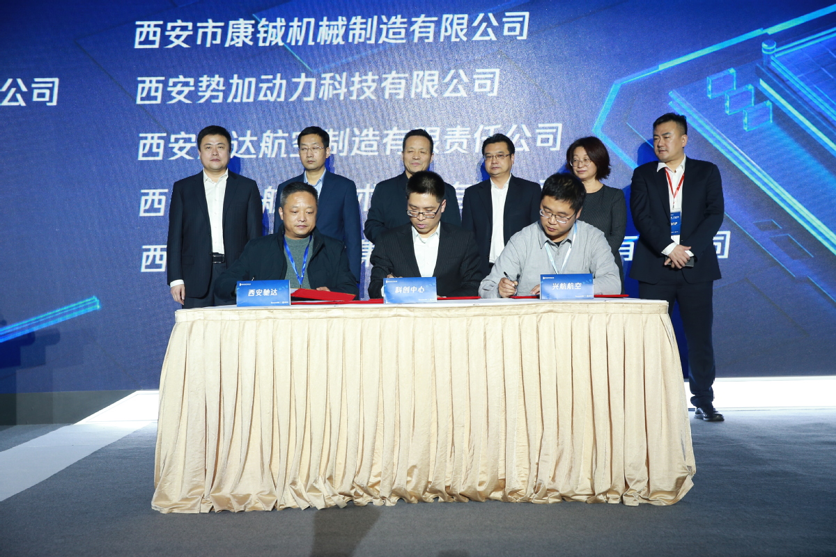 活动现场,西安交通大学、西安电子科技大学等高等院校,中国银行、中国建设银行、西安银行、中国邮政储蓄银行等金融机构,西安兴航航空科技股份有限公司、西安驰达飞机零部件制造股份有限公司等航空制造企业代表分别与西安航空科技创新服务中心有限公司签约,正式入驻西安航空大数据中心平台。