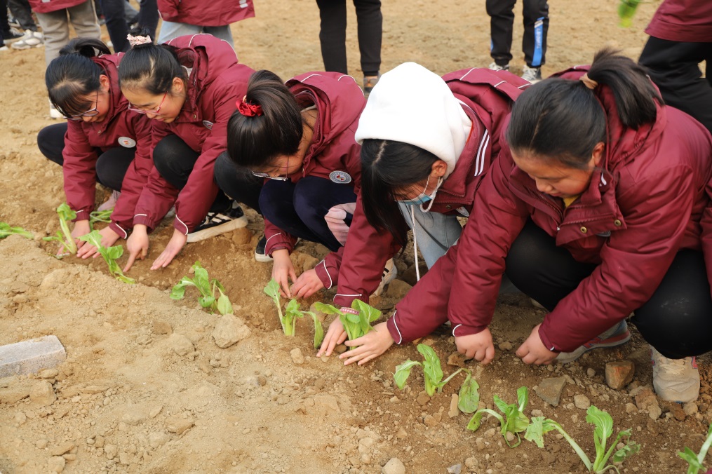 “我还没有种过菜呢!”有几个同学低声说道。老师笑着说“不会就要认真学!”。学生在师傅指导下亲自动手松土、培土、种植、浇水,种下一颗颗幼嫩的菜苗。学生们在劳动实践中学会跟大自然互动,主动跟同学合作、交流、探究。这不仅培养了学生劳动观念,陶冶了道德情操,还让学生懂得劳动果实的来之不易,逐渐养成珍惜劳动成果和勤劳节俭的好习惯。