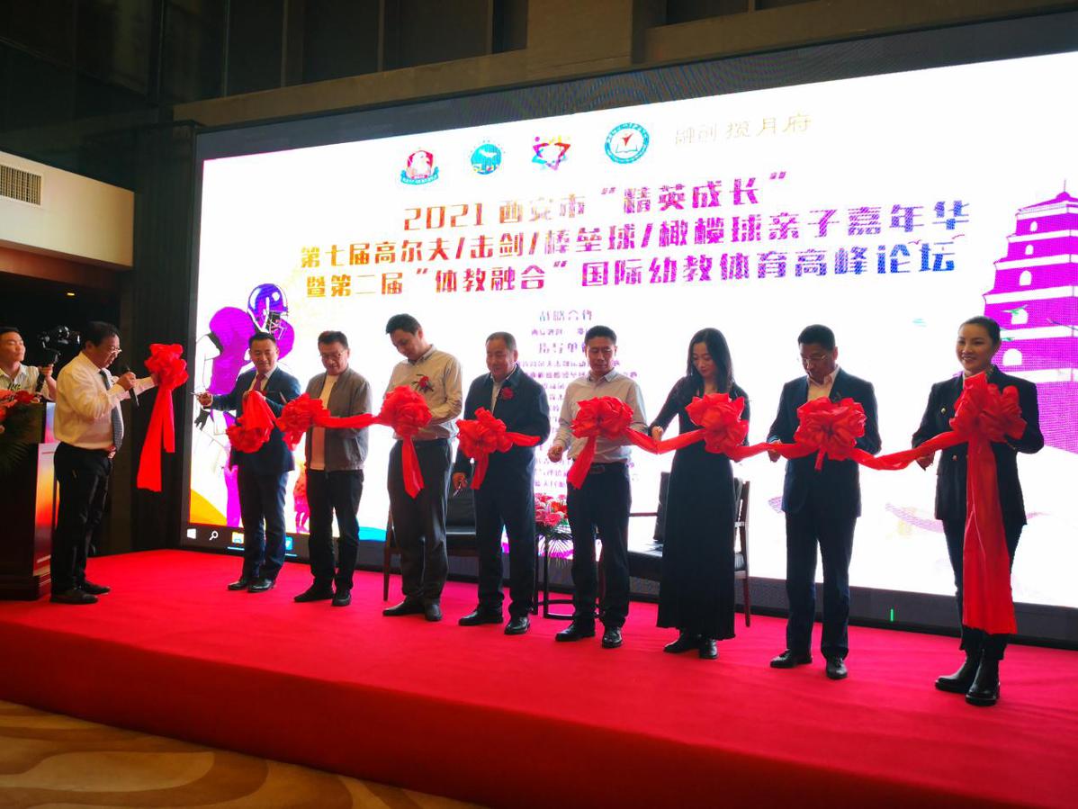 5月5日,由陕西省高尔夫击剑运动管理中心、陕西省手球曲棍球棒球垒球运动管理中心、陕西省高尔夫球协会、陕西省击剑协会、陕西省棒垒球协会、西安市浐灞生态区教育局、西安市浐灞生态区社会事业管理局指导,由西安市精英成长青少年户外体育活动营地、陕西省教育考试与评价研究会学前教育分会、陕西蓝天民航技师学院主办,陕西蓝天精英成长营地学院、新加坡汉桥西安精英成长学院协办,由西安融创地产·揽月府等企业赞助的2021西安市精英成长第七届高尔夫、击剑、棒垒球、橄榄球亲子嘉年华(校际联赛)暨第二届“体教融合”国际幼教体育高峰论坛在西安浐灞生态区世博园--西安市精英成长青少年户外体育活动营地成功举办。西安市十余所知名小学的100余名小运动员四个国际体育项目同台竞技,为十四运呐喊助威,给青少年“体教融合”再添新彩。