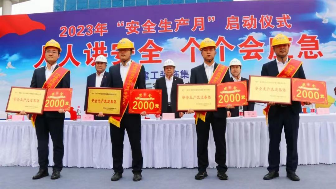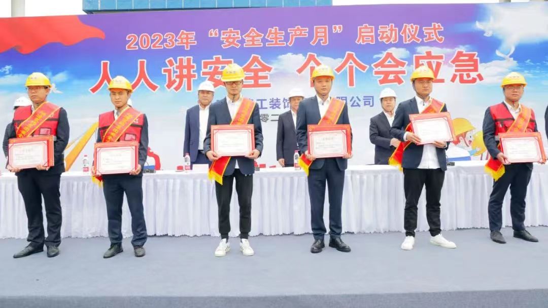 为了在全集团唱响“生命至上、安全第一”的主旋律,大力营造“人人讲安全、人人为安全”的良好氛围,6月5日上午,陕西建工装饰集团在下属海西亚幕墙科技公司陕西广播电视发展基地外幕墙项目部举行了2023年“安全生产月”活动启动仪式。集团董事长吕书全宣布2023年陕西建工装饰集团有限公司“安全生产月”活动正式启动,集团总经理王伟讲话,集团党委书记刘毅等班子成员颁奖并授旗,集团副总经理赵伟主持仪式。