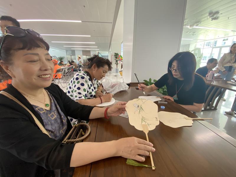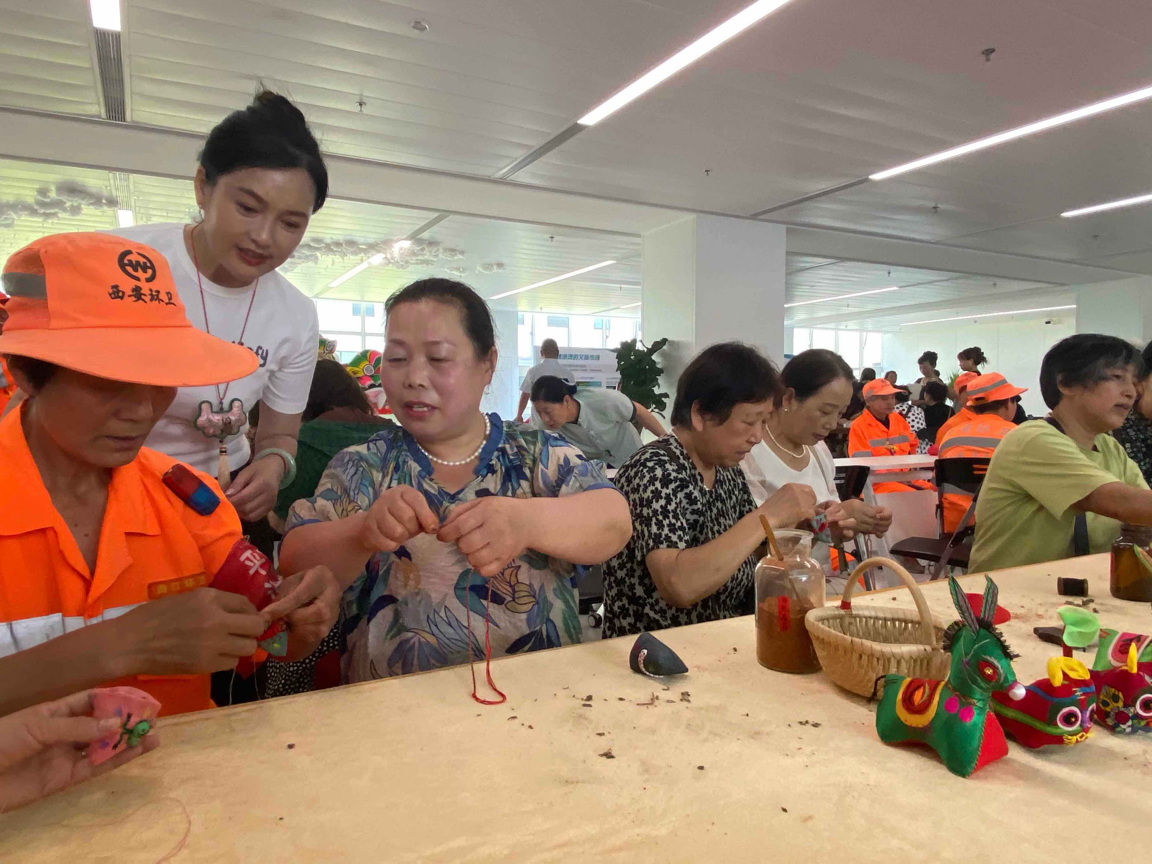 6月7日,在省文化馆曲江馆区,环卫工人、社区居民齐聚一堂,做香囊、绘彩扇、临书帖,大家脸上洋溢着幸福的笑容。