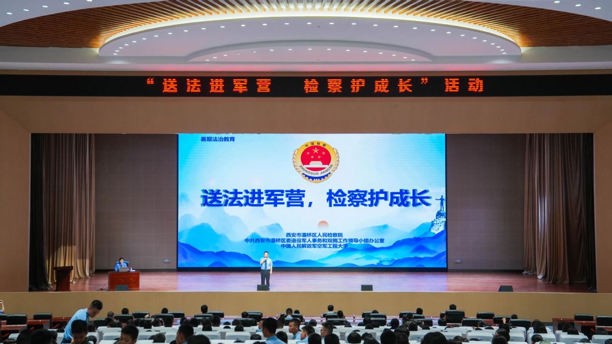 8月5日,西安市灞桥区人民检察院联合西安市灞桥区委退役军人事务和双拥工作领导小组办公室走进中国人民解放军空军工程大学,以送法进军营的方式为夏令营的四百余名军人子女带来一场沉浸式暑期法治课。