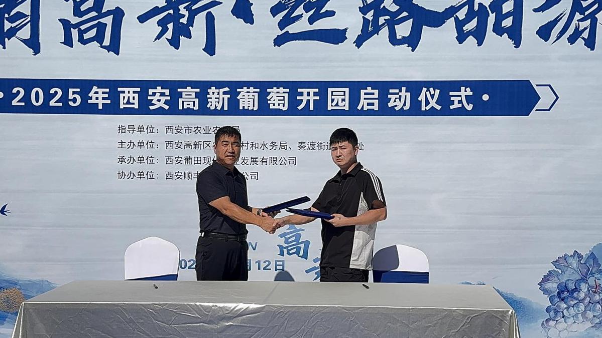 8月12日上午,“葡韵高新·丝路甜源”2025西安高新葡萄开园仪式在秦渡街道千王村葡田枝下现代农业园区成功举办。周边农户、市民游客与各界代表齐聚葡萄架下,共同迎接新一季葡萄丰收季的到来。