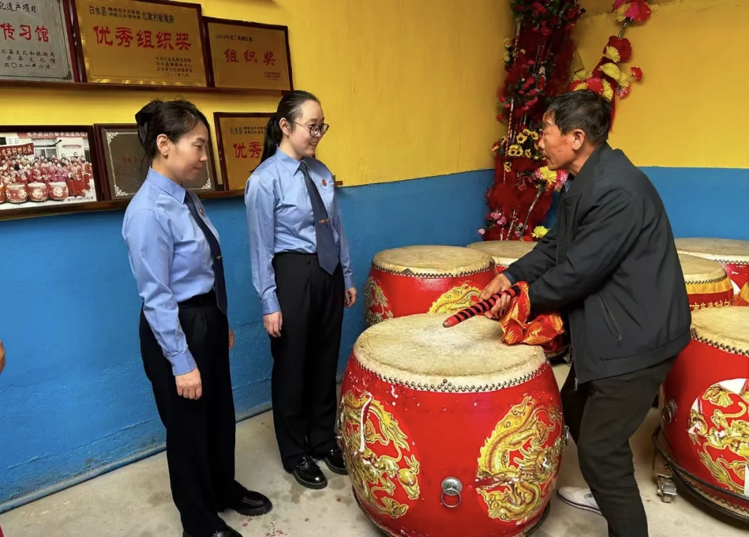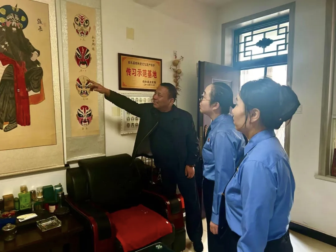为深入挖掘非遗文化内涵、筑牢文化保护法治屏障,近日,陕西白水县人民检察院党组成员、政治部主任韩欣,白水县文化馆非遗股股长黄梦鸽以及检察干警,先后走进水苏老鼓传承基地与东府秦腔脸谱工作室,在文化“寻保传”专项活动中,近距离触摸彭衙大地上的非遗传承脉搏。