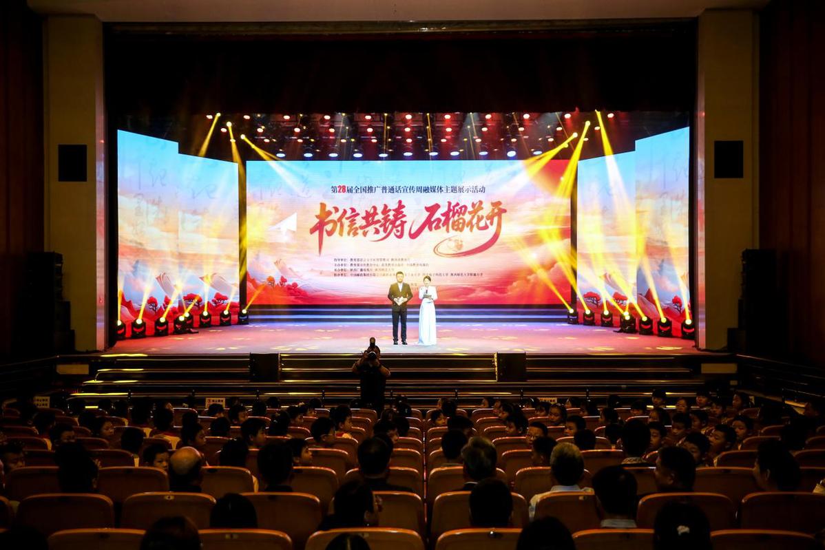 9月29日,第28届全国推广普通话宣传周融媒体主题展示活动在陕西师范大学隆重举行。本次活动以“书信共铸,石榴花开”为主题,由教育部语言文字应用管理司、陕西省教育厅指导,教育部宣传教育中心、高等教育出版社、中国教育电视台联合主办,陕西广播电视台、陕西师范大学承办。教育部语言文字应用管理司副司长王晖,陕西省委教育工作委员会委员、省教育厅副厅长申雪峰,中国邮政集团有限公司邮政业务部副总经理曹建申,教育部宣传教育中心副主任杨晨光,高等教育出版社副总编辑张泽,陕西师范大学党委副书记卢胜利等出席活动。