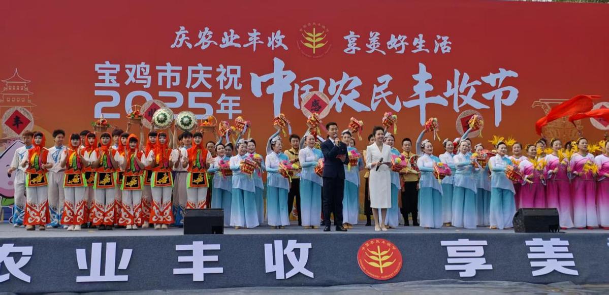 9月23日,宝鸡市庆祝2025年中国农民丰收节活动在陈仓区周原镇绿丰源现代农业示范园举行。活动现场,来自全市的“千万工程”示范村代表、吨粮镇代表、吨粮村代表、乡村工匠、最美“新农人”代表与当地群众齐聚一堂,共享丰收喜悦、共话农业发展。