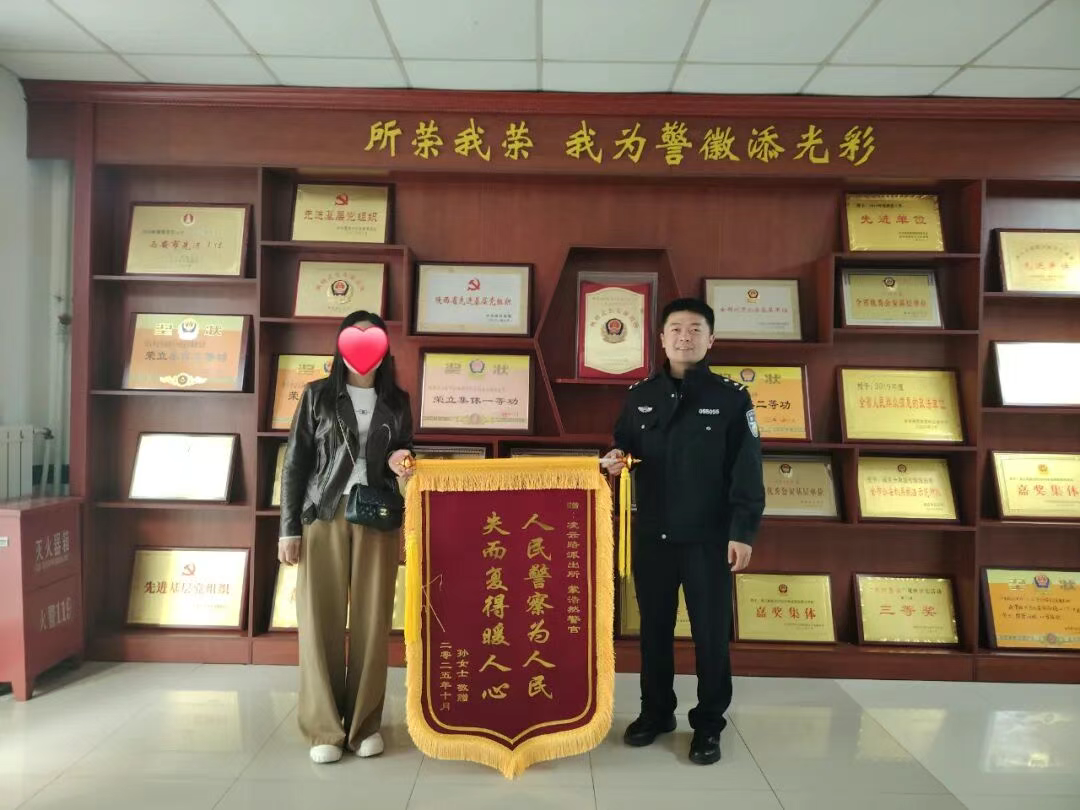 “感谢民警同志,要不是你们,我这钱就找不回来了!”10月14日上午,孙女士将一面印有“人民警察为人民 失而复得暖人心”的锦旗送到公安阎良分局凌云路派出所,感谢民警帮她追回被骗的1万余元。