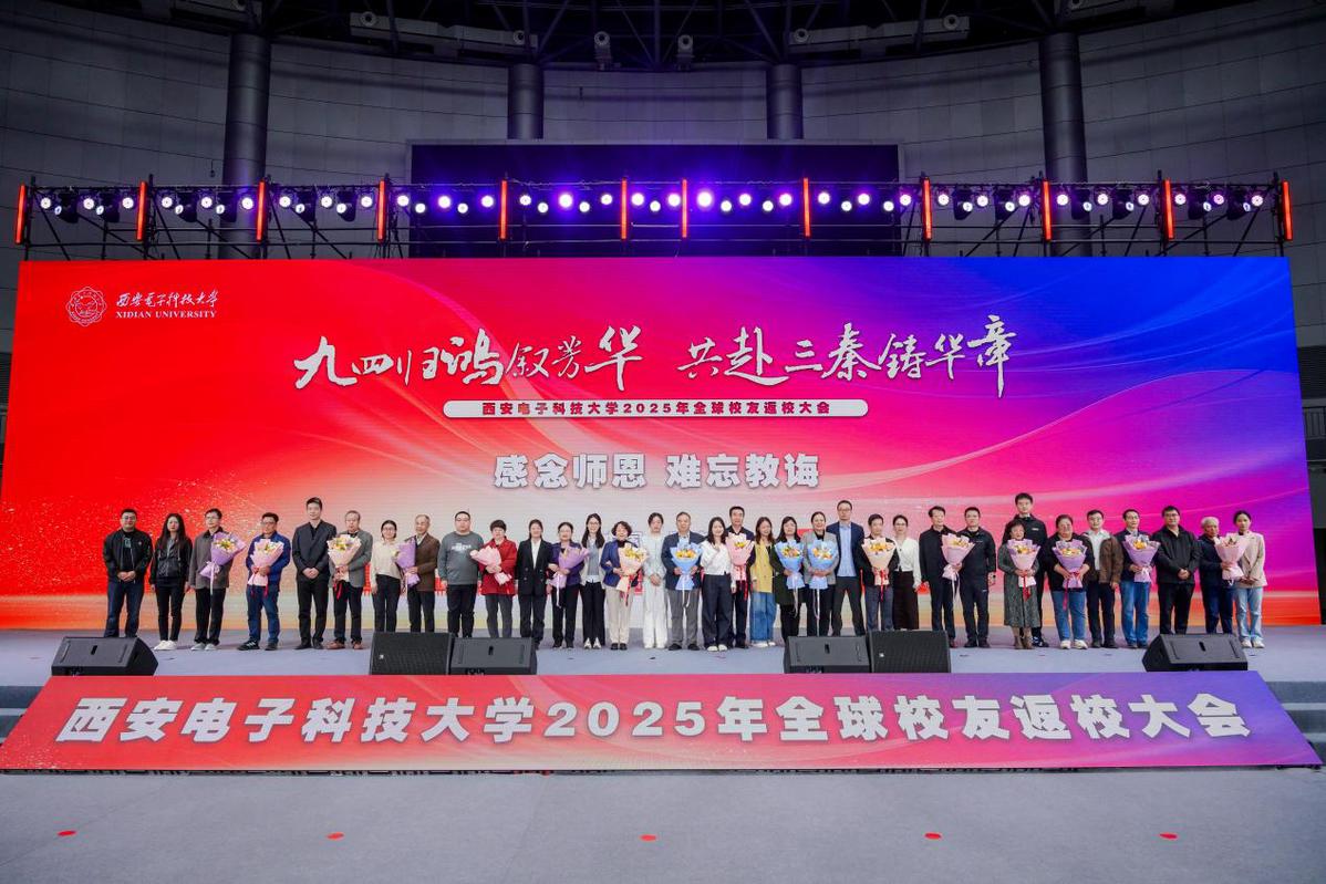 10月18日,西安电子科技大学2025年校友返校大会在南校区远望谷体育馆温情启幕。本次大会以“九四归鸿叙芳华,共赴三秦铸华章”为主题,汇聚老领导、老教师代表,各单位负责人,校友企业家及全球各地校友会代表等1300余人,共忆校园岁月,共话母校发展。
