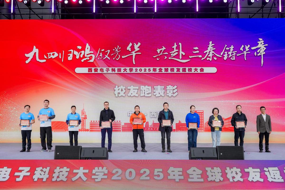 大会期间还举行了表彰仪式,高新波在现场为校友颁发校友工作“卓越贡献奖”和“积极贡献奖”,西安电子科技大学党委常委、党政办主任蔡固顺为校友跑“个人奖”获奖代表颁奖,西安电子科技大学副校长朱文凯为校友跑“集体奖”代表颁奖。