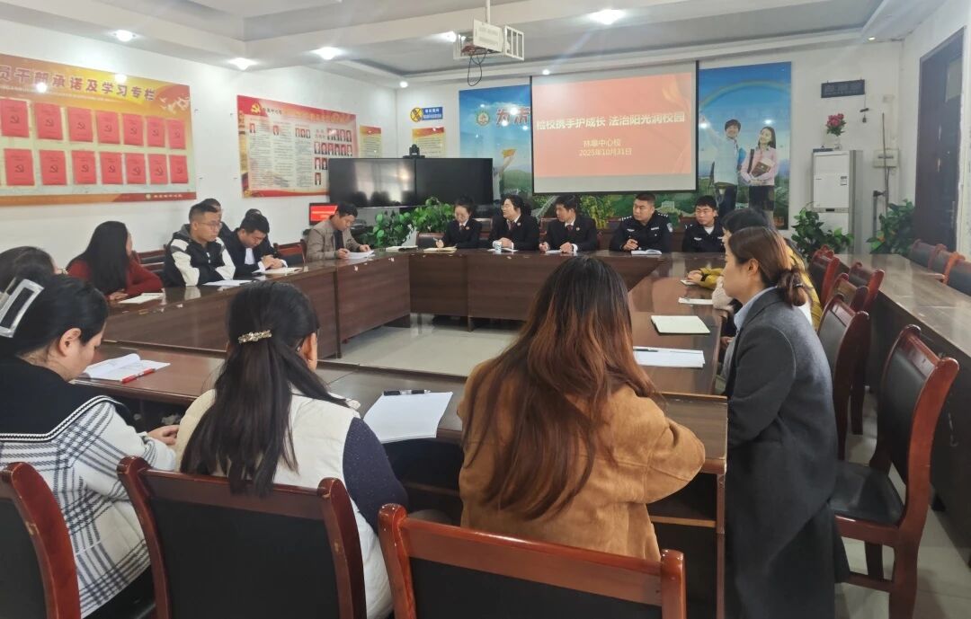 为持续深化未成年人法治教育,筑牢校园安全防护网,推动 “法治进校园” 工作走深走实,近日,陕西白水县人民检察院联合县公安局林皋派出所,走进白水县林皋中心校召开专题座谈会。检委会专职委员郝梓伊、员额检察官兼法治副校长王英民及检察干警、派出所民警,与学校负责人、德育主任及部分教师齐聚一堂,围绕校园法治建设、未成年人保护与犯罪预防等关键问题深入交流。