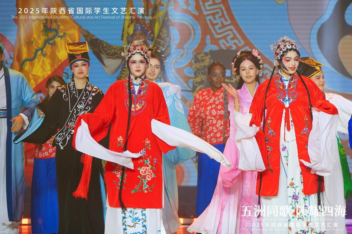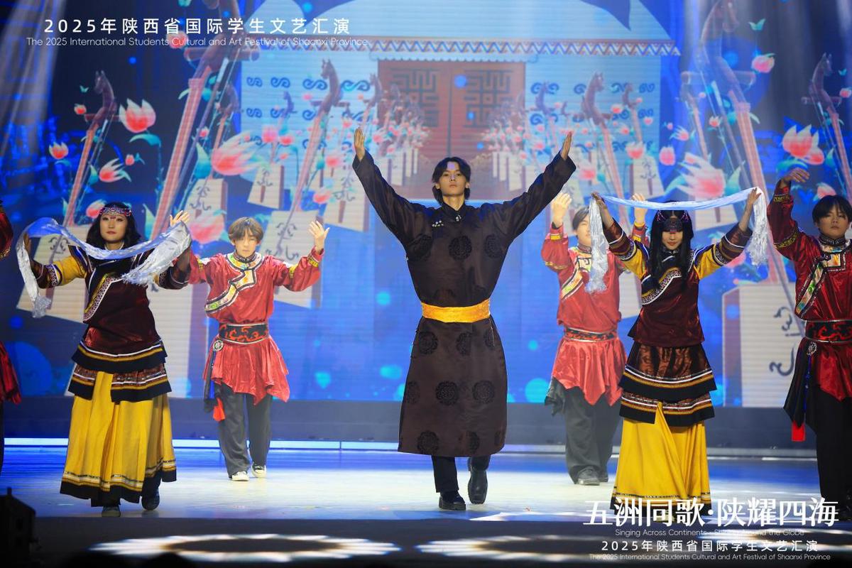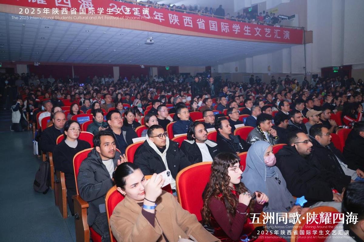 本次汇演以“五洲同歌 陕耀四海”为主题,由陕西省教育厅主办,陕西省高等教育学会外国留学生教育管理分会与西安电子科技大学联合承办,多所高校协办,旨在通过文艺展演展现中华文化的开放包容,彰显陕西国际化人才培养成果。晚会以热烈的国际学生打鼓舞开场,分为“多元五洲・文明之源”与“东方之韵・和美世界”两大篇章,现场掌声与欢笑声此起彼伏,氛围热烈。