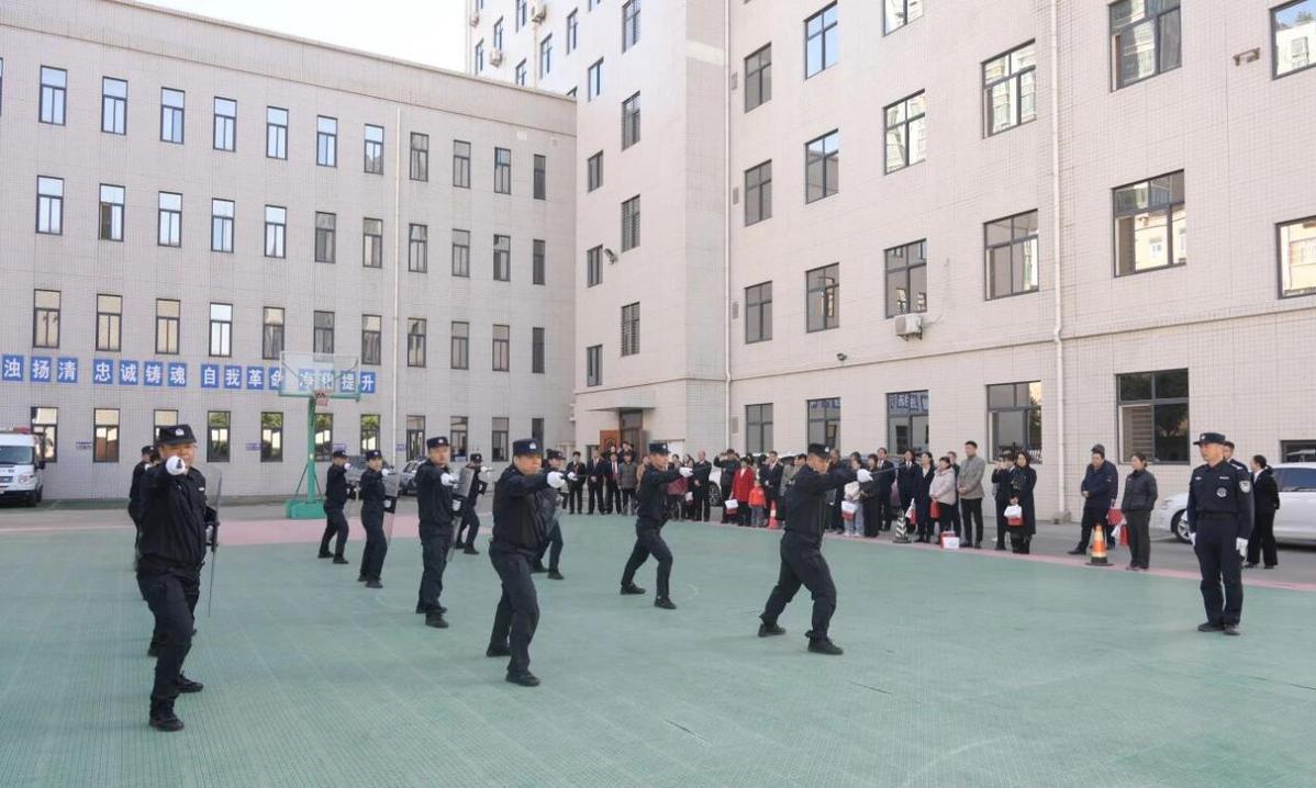 九楼的干警活动室里,欢笑驱散了冬日的寒冷。图书角的书架上摆满各类书籍,瑜伽区的健身器材擦得锃亮,休闲区的沙发上还放着靠垫。“原来单位这么关心他们的生活,我们在家也能更放心了。”一位干警母亲看到活动室的布置,欣慰地说。随后,法警们带来的实战演练更让现场掌声雷动,刚劲有力的擒敌拳、整齐划一的警棍盾牌操,让家属们亲眼见证了亲人守护正义的飒爽身姿。