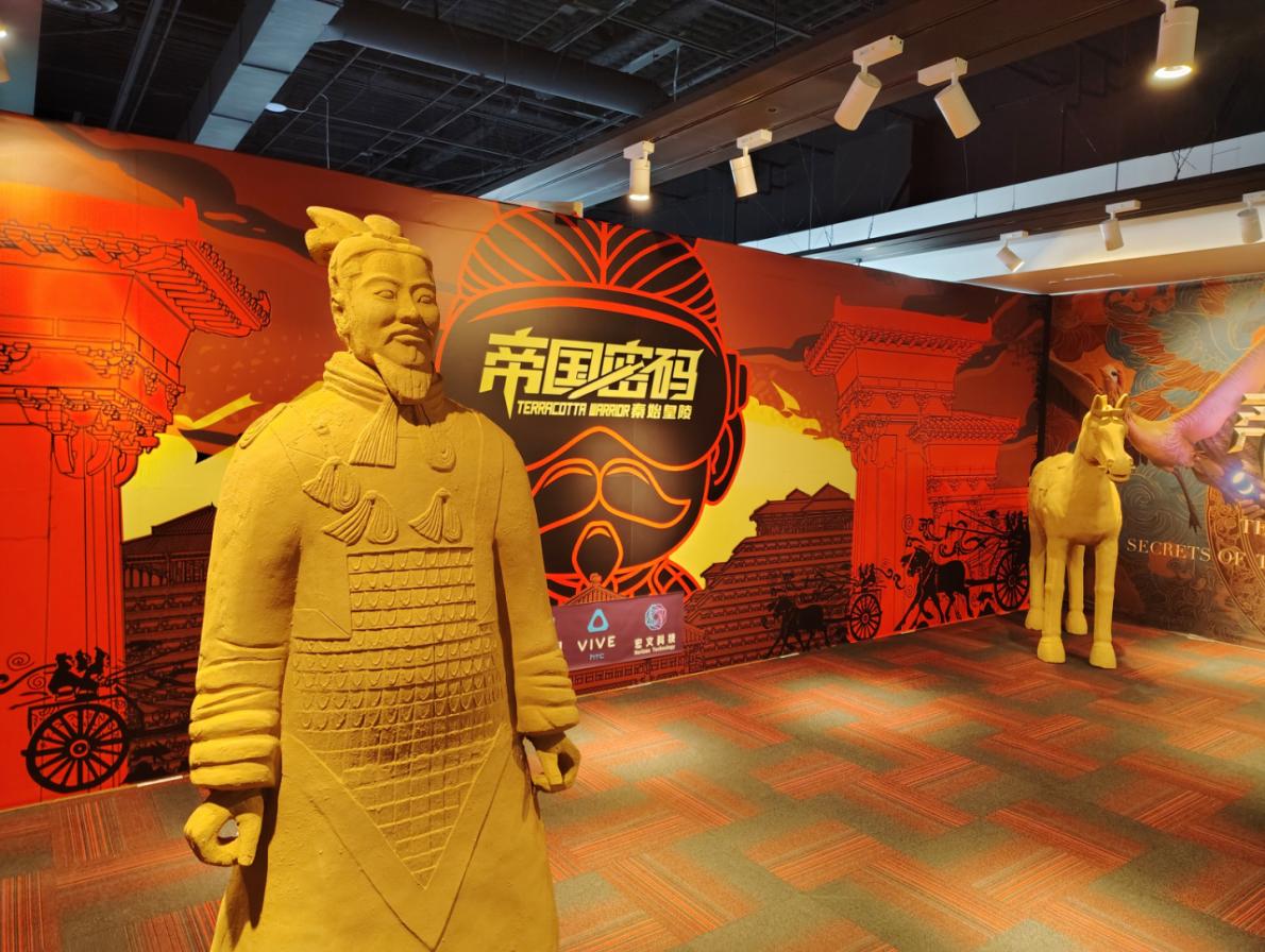 《帝国密码——秦始皇陵》项目基于严谨考古研究与高精度数字化复原,运用5K超高清视觉、空间定位追踪及手势交互等技术,构建出逼真的秦代地宫沉浸环境。观众可“亲身”推开地宫大门、直面兵马俑军阵,在互动探索中感受两千年前的历史现场。