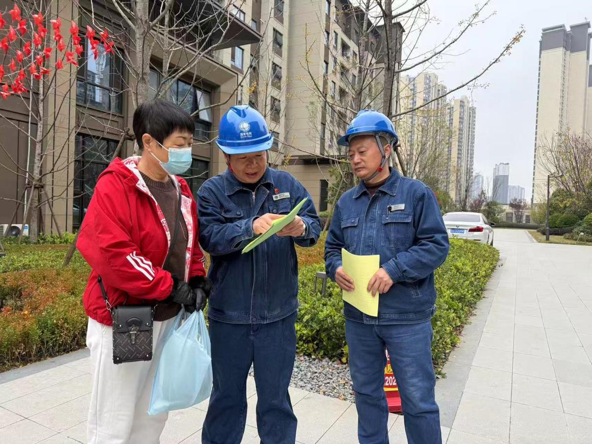 国网陕西电力工作人员向小区居民介绍电价政策
